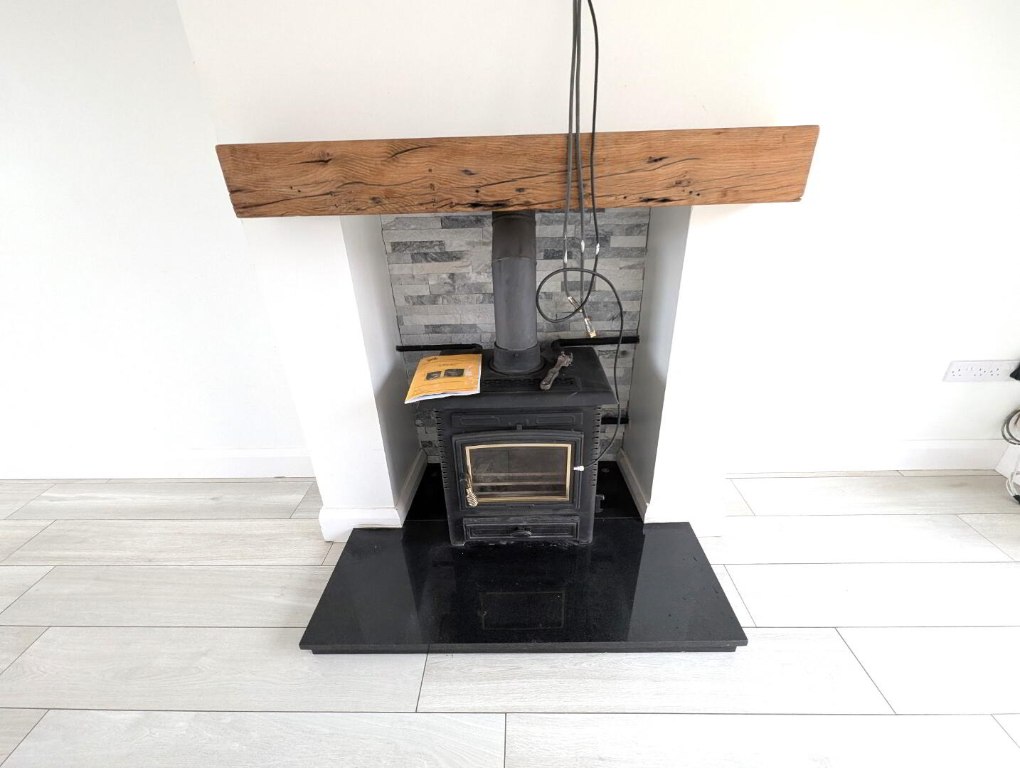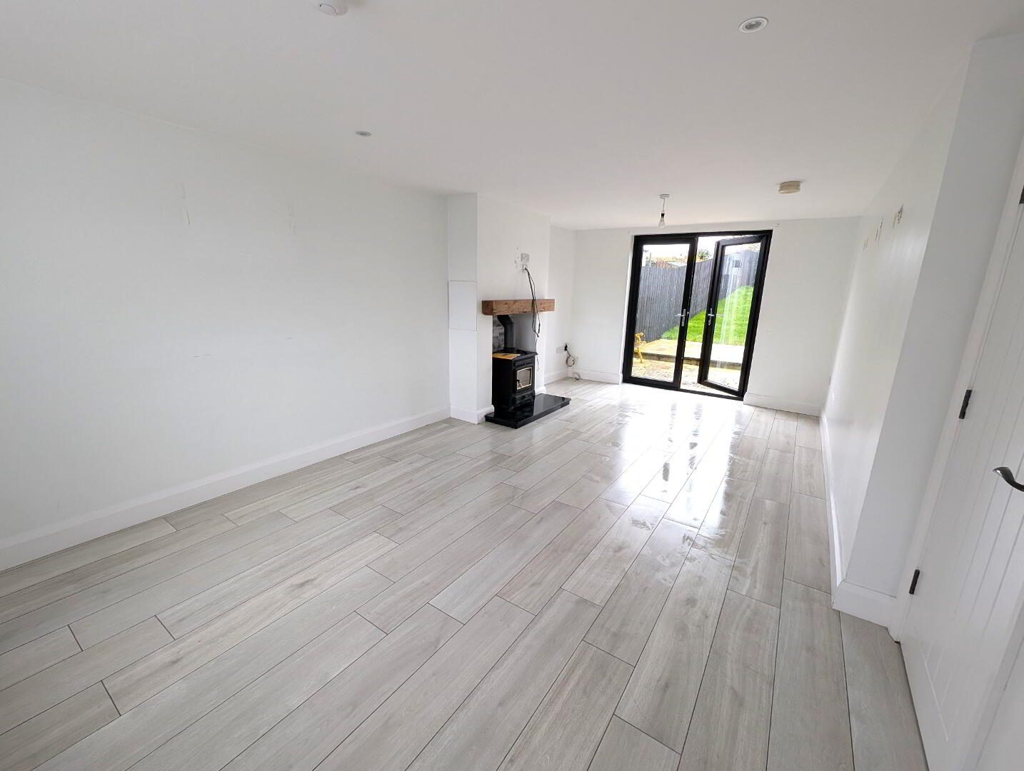 Wood burning stove, patio doors to garden, tiled floor, double radiator, power points