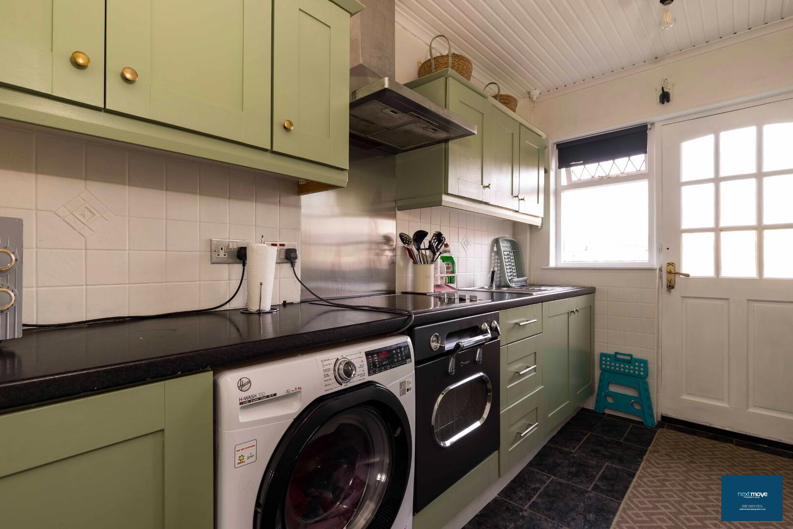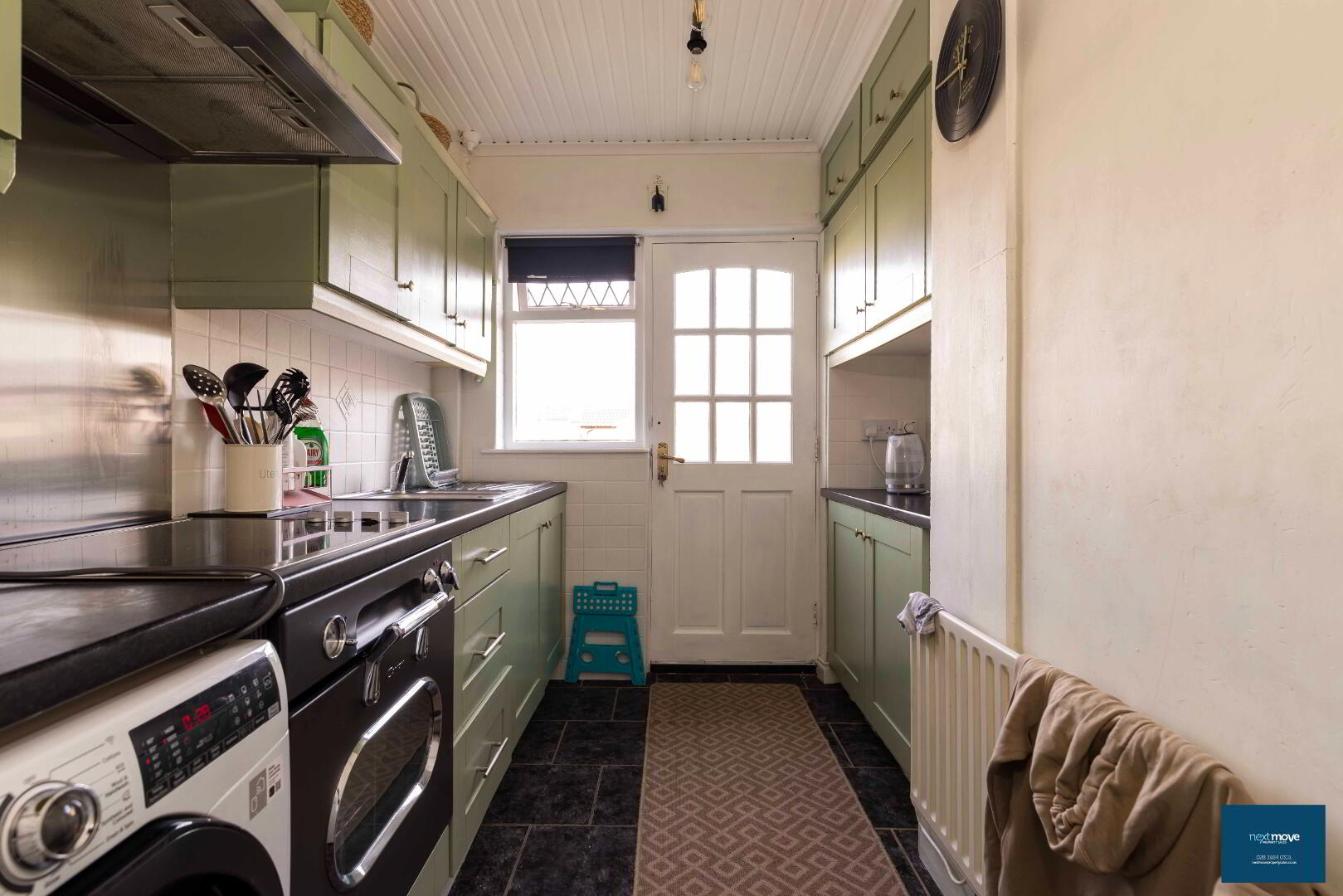 High and low level units, stainless steel sink unit, partially tiled walls, hob and oven intergrated, tiled floor