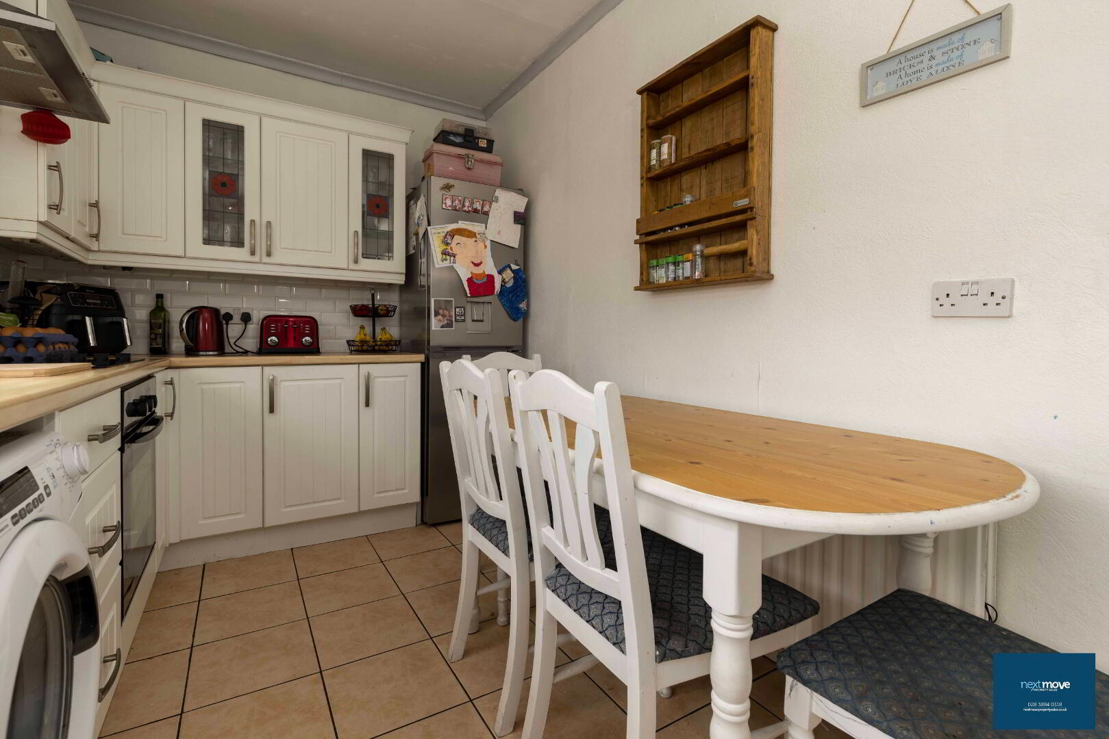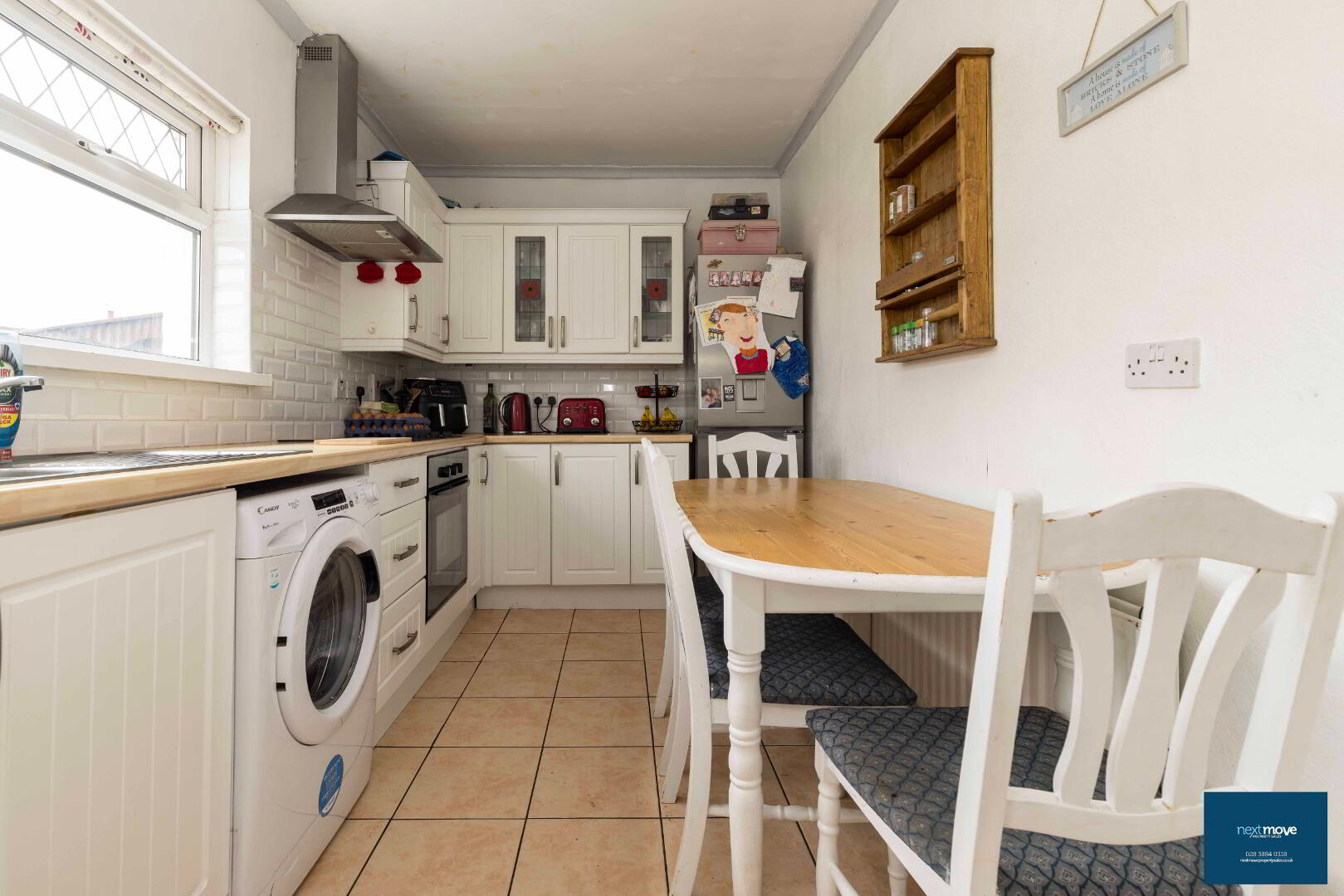 High and low level units, integrated oven/hob, tiled floor, partially tiled walls, radiator, power points