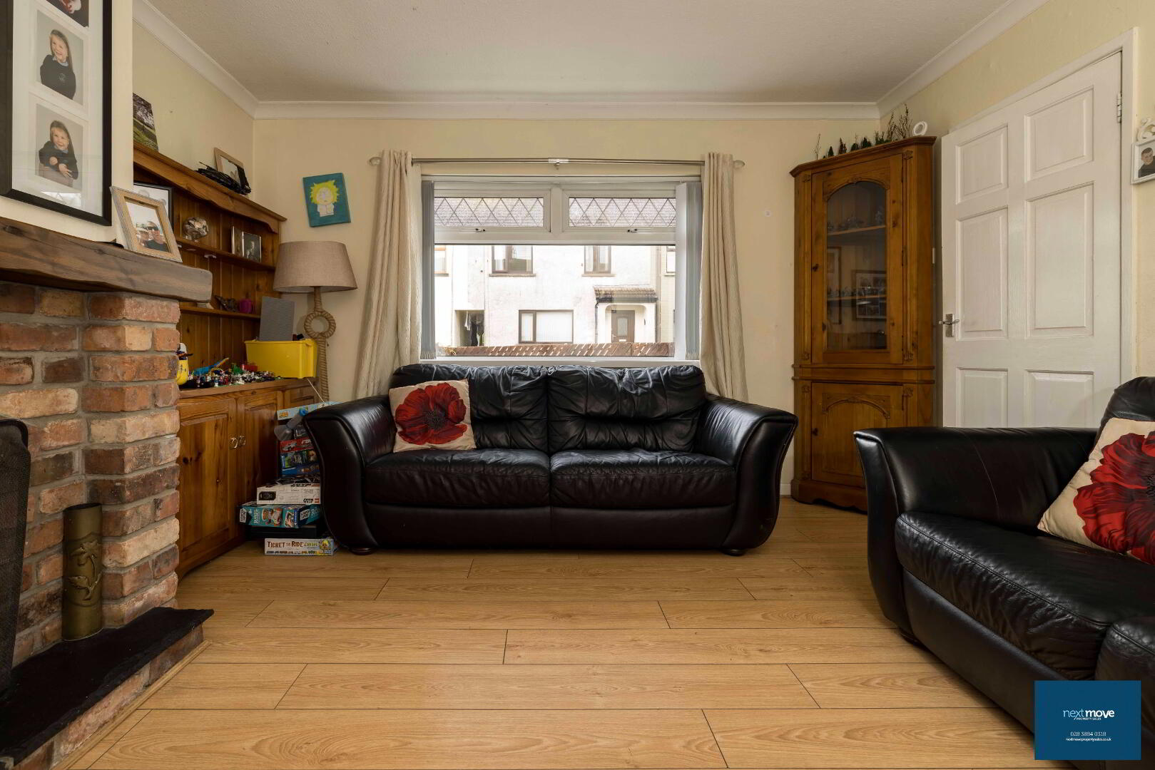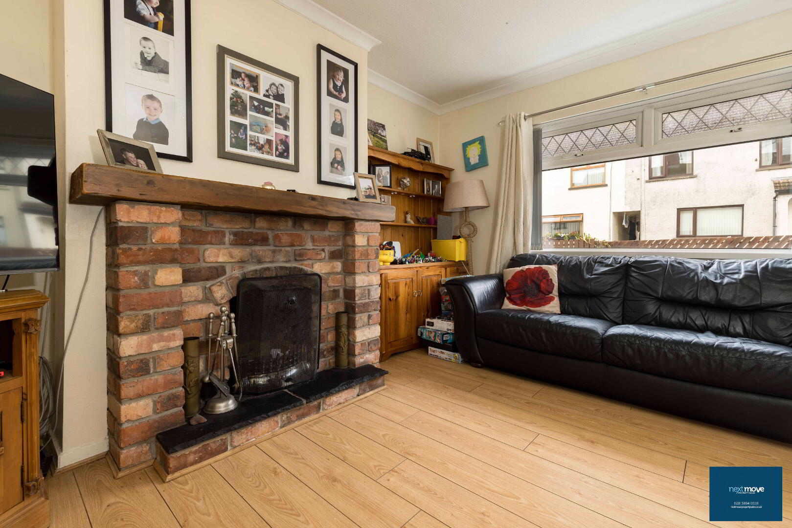 Open fire with brick surround, laminate floor, radiator, power points