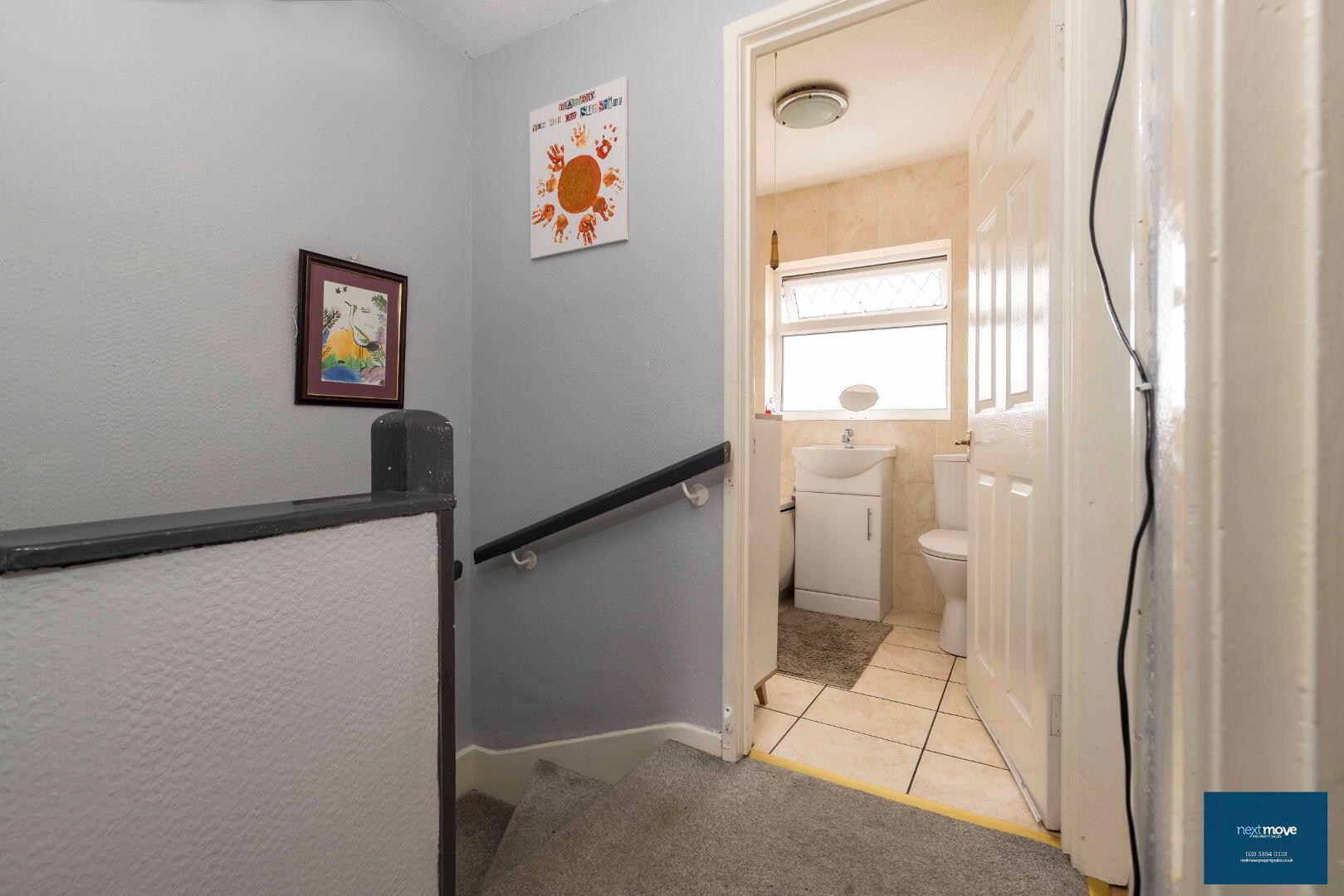 PVC glazed door, laminate floor, stair carpet, double radiator