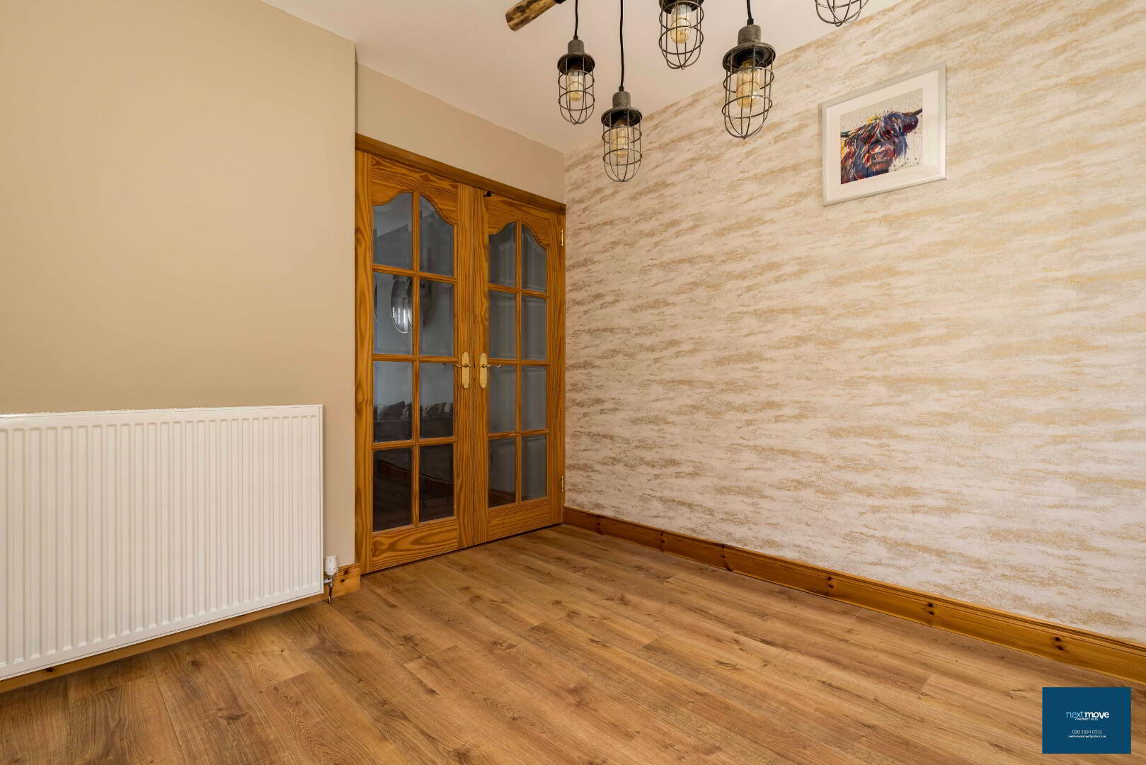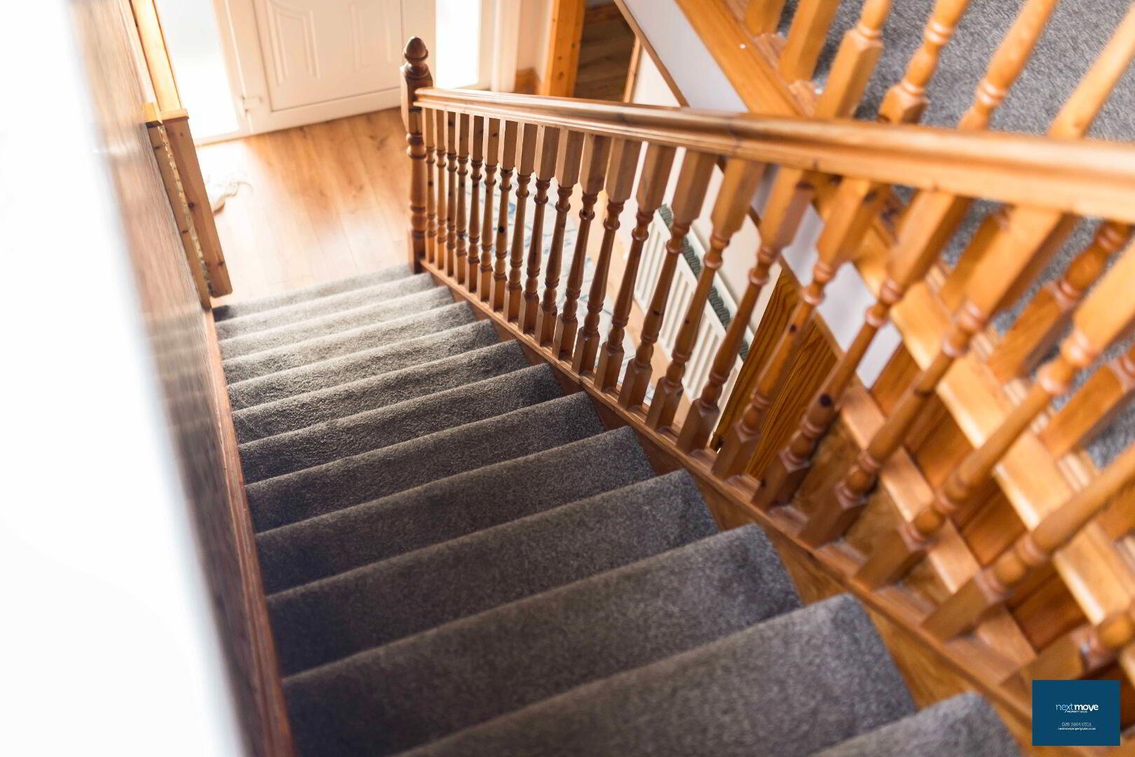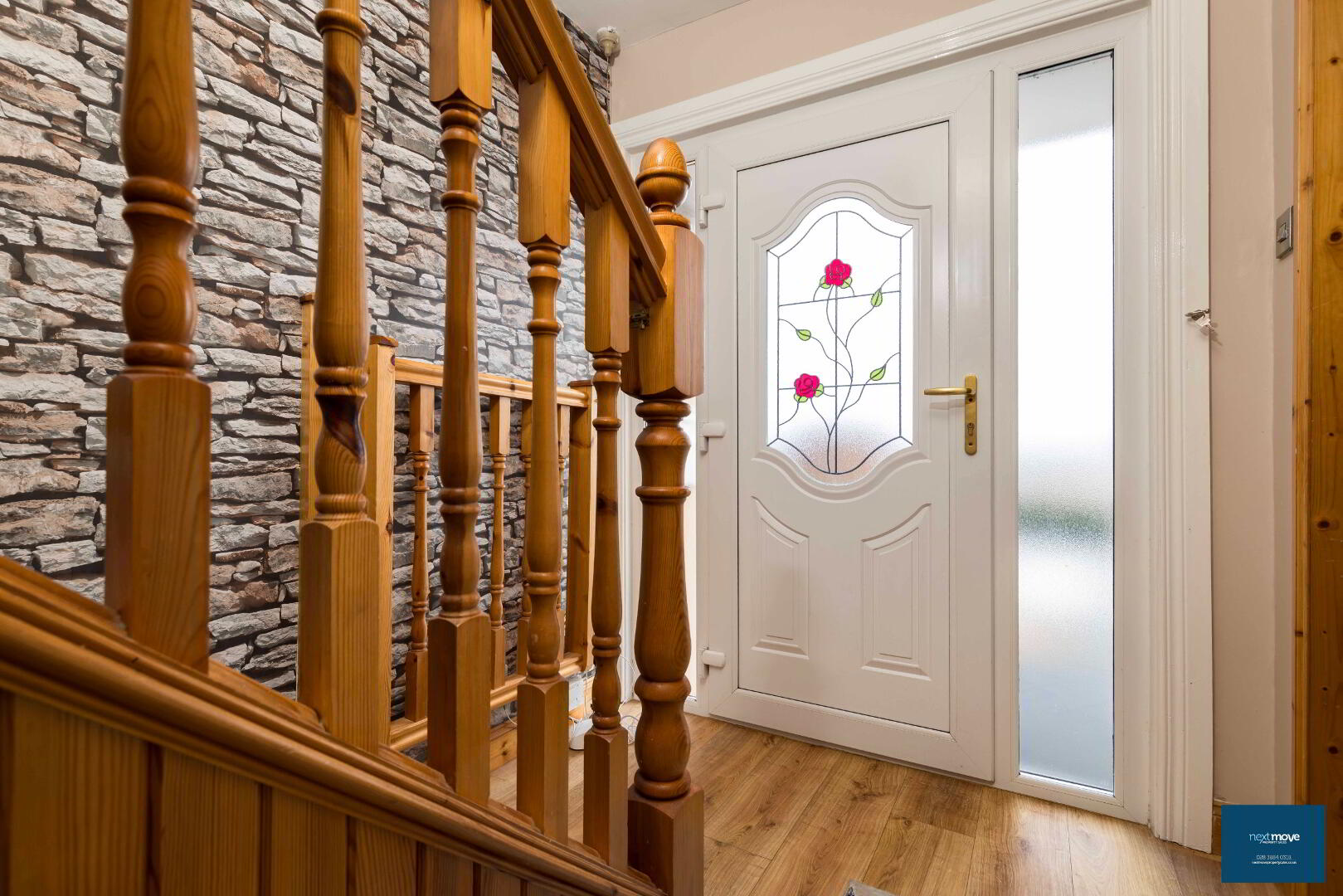 PVC glazed door, laminate floor, stair carpet, double radiator, telephone point, power points