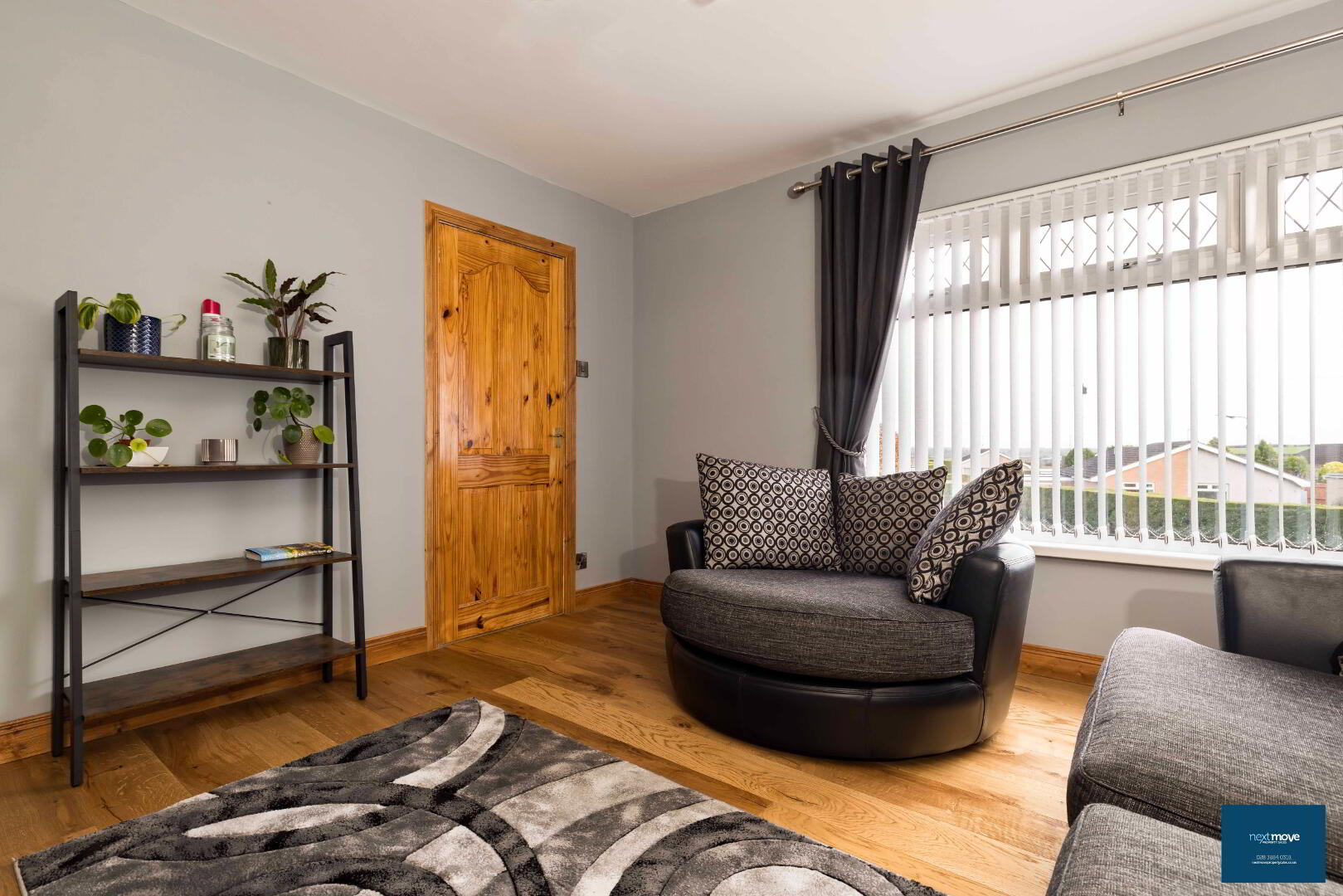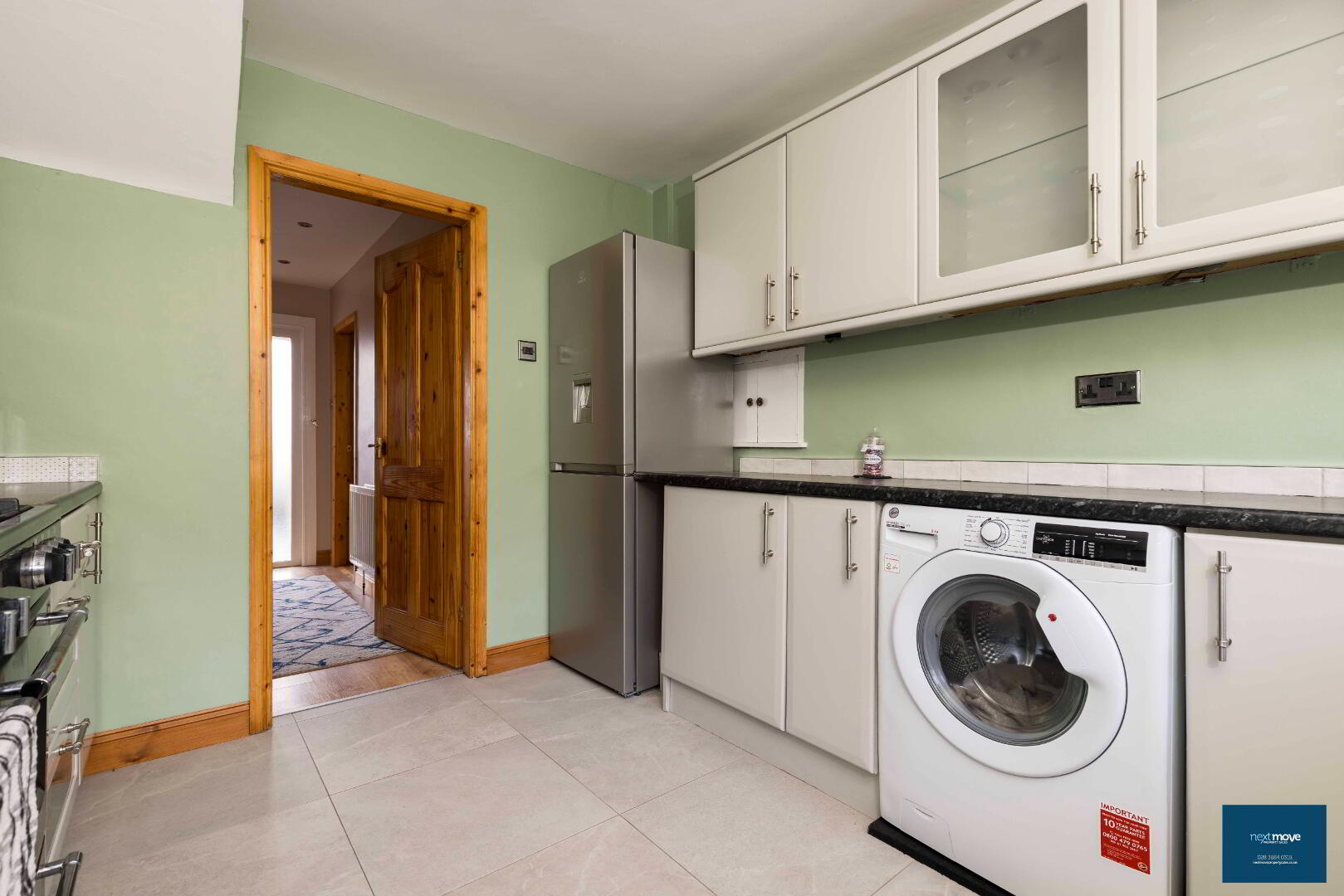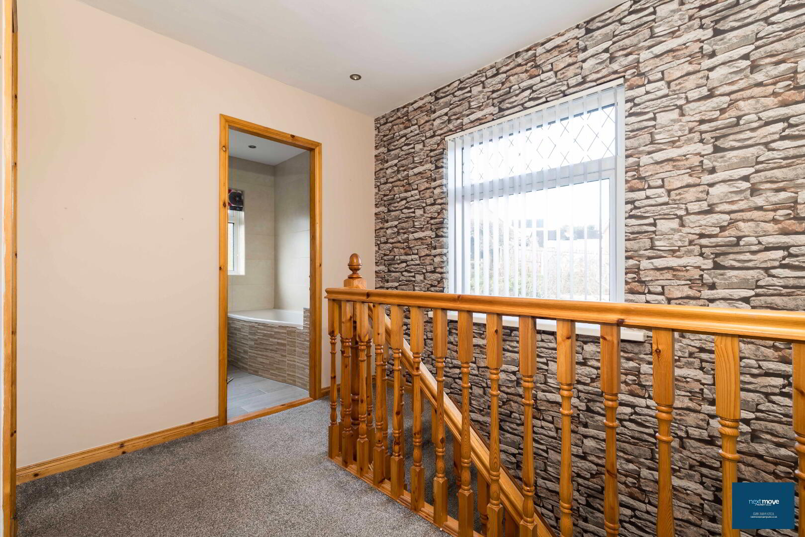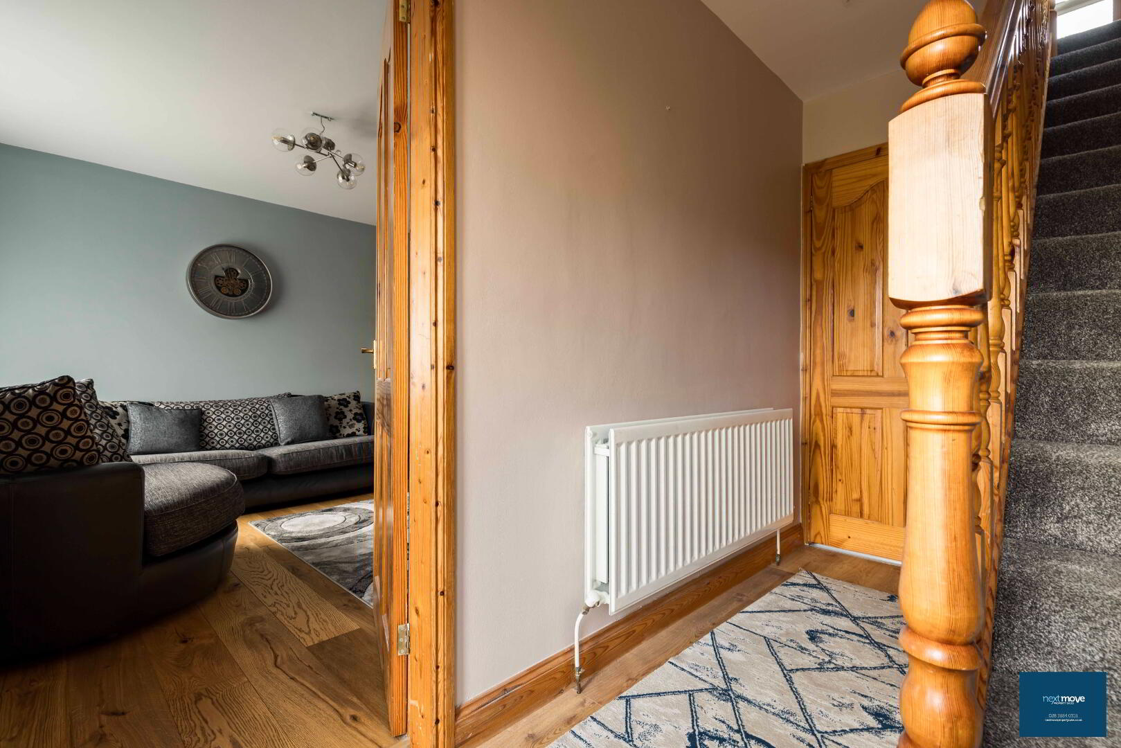 PVC glazed door, laminate floor, stair carpet, double radiator, telephone point, power points