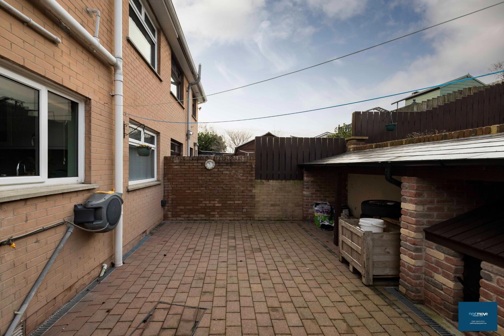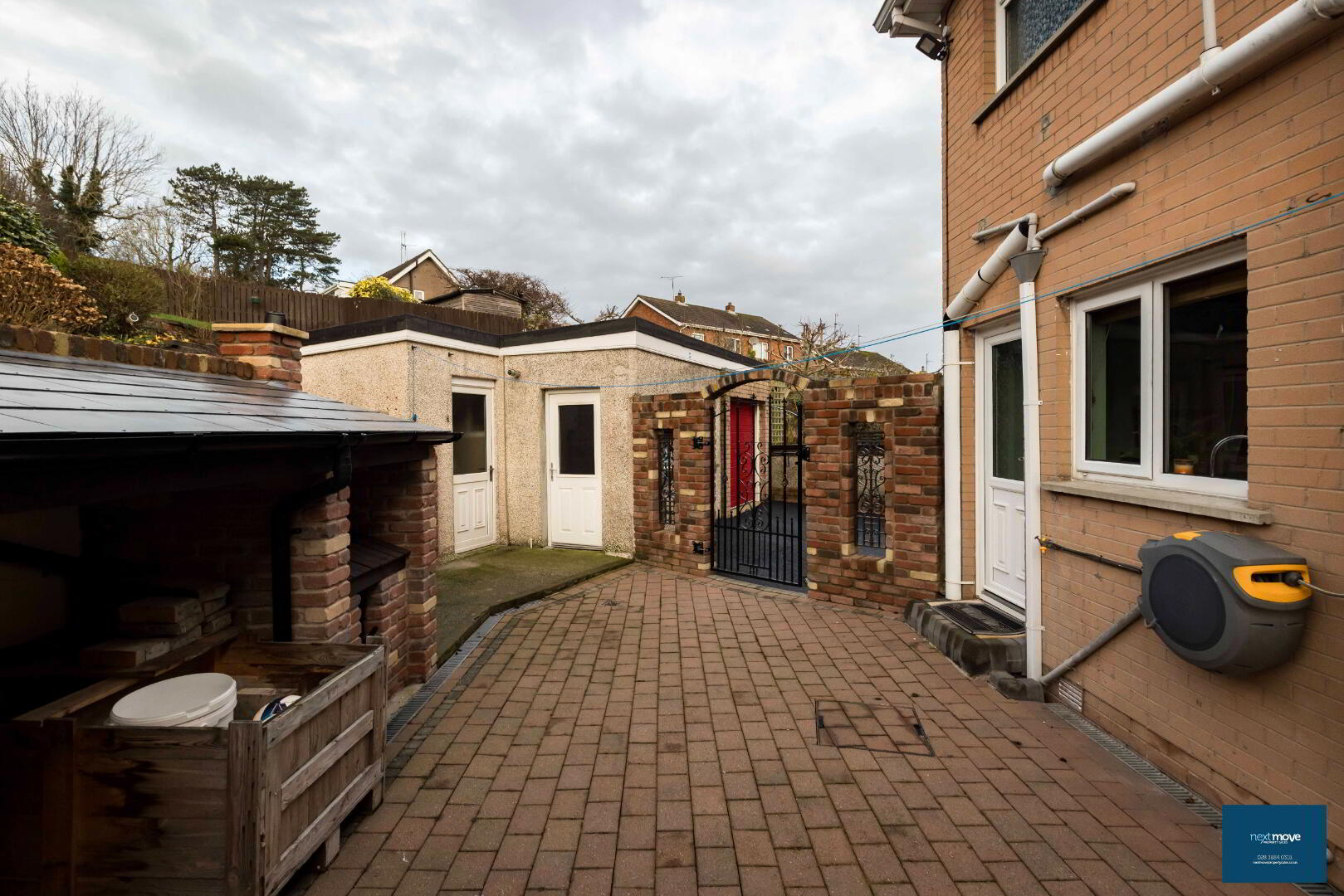 Level 1 – Paved area, block storage area, side gate entrance, tap